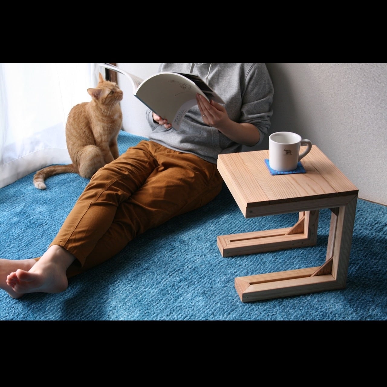 カンチレバー(片持ち梁)構造のサイドテーブル。